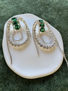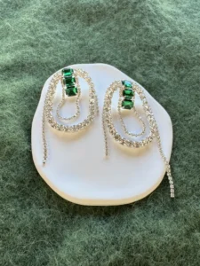 Κλέψτε τις εντυπώσεις με αυτά τα σκουλαρίκια που συνδυάζουν τη λάμψη των Ζιργκόν με την πολυτέλεια του πράσινου σμαραγδιού. Ιδανικά για βραδινές εξόδους. Η μακριά κρεμαστή τους γραμμή απογειώνει κάθε σύνολο.