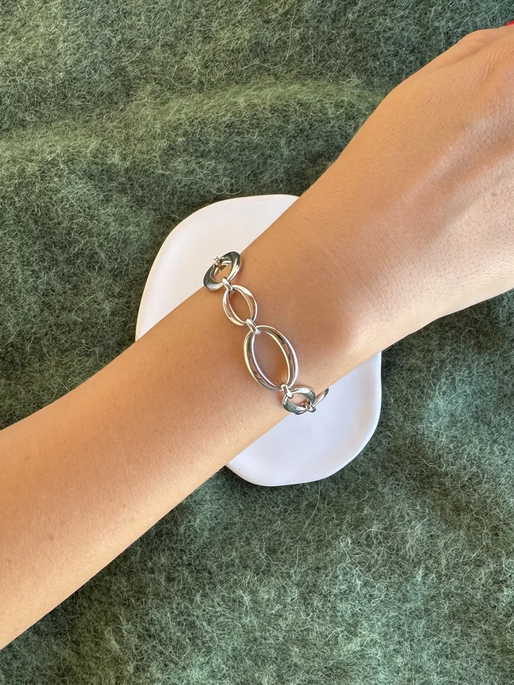 Ασημί ατσάλινο βραχιόλι με οβάλ ‘χοντρούς’ κρίκους
