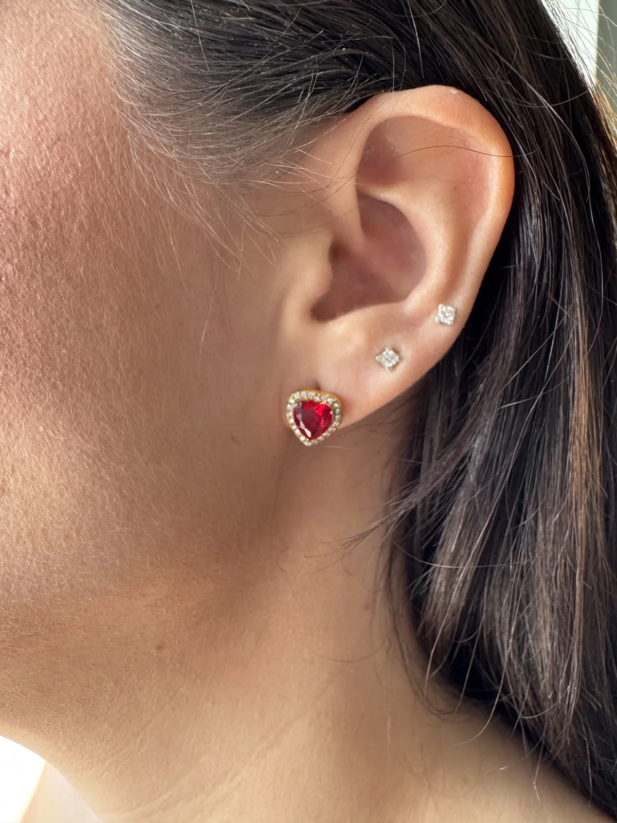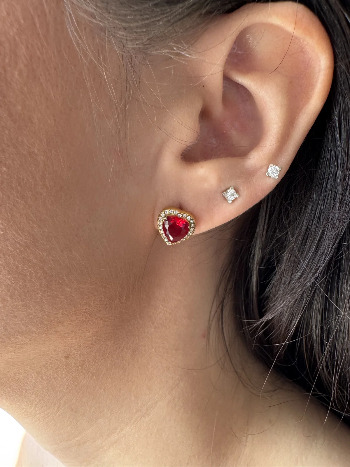 Ατσάλινα Σκουλαρίκια Καρφωτά με Κόκκινη Καρδιά και Ζιργκόν