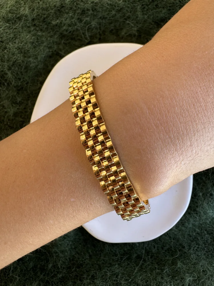 Χρυσή Ατσάλινη Χειροπέδα Τύπου Mesh (Πλεκτή Ψάθα)